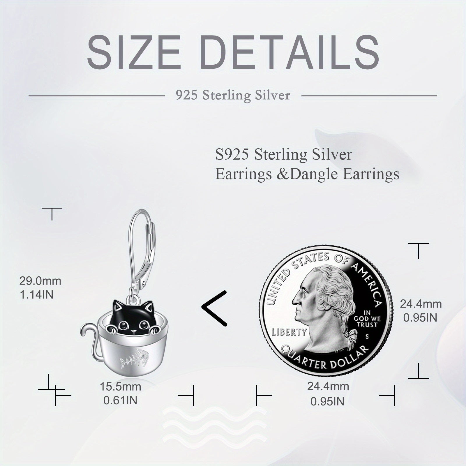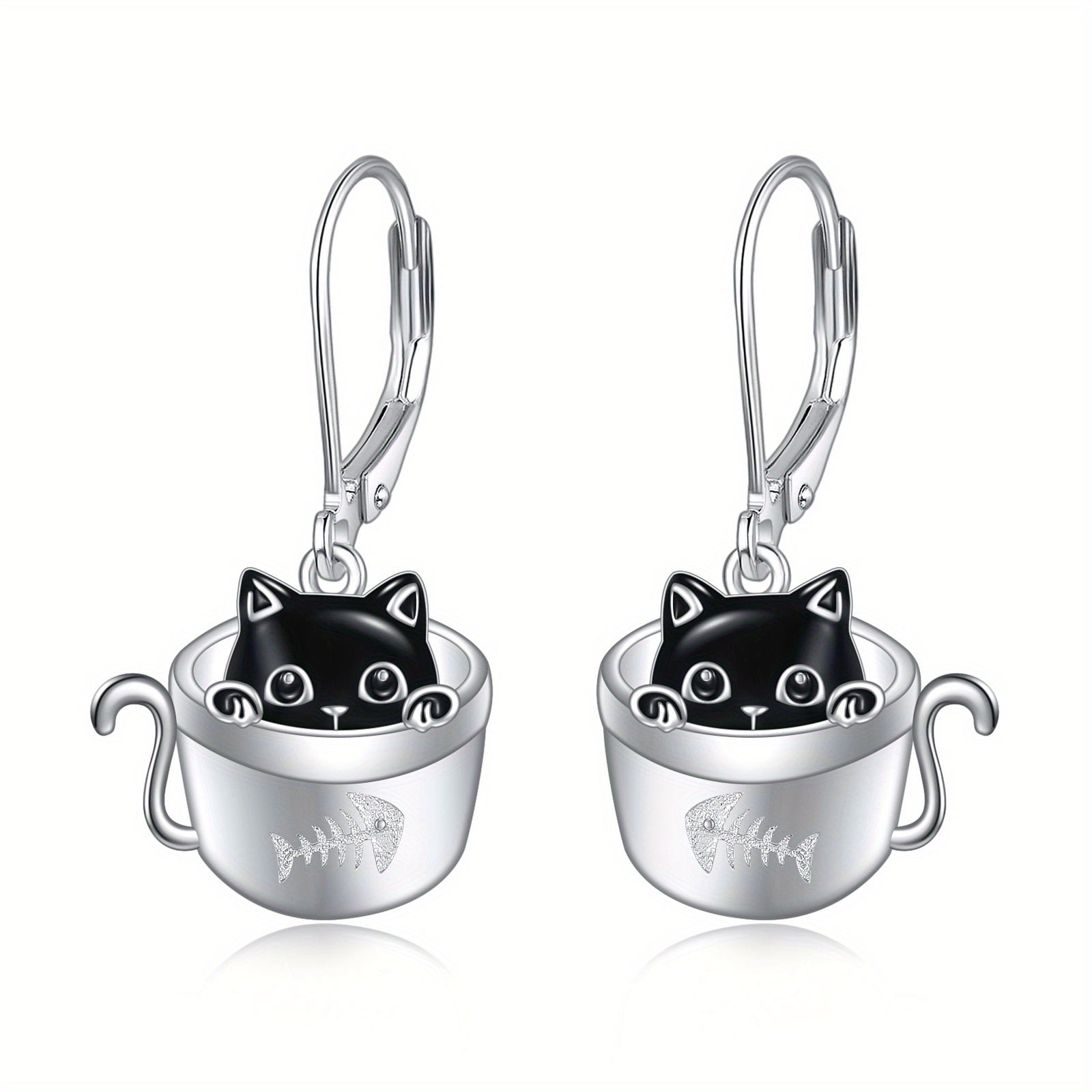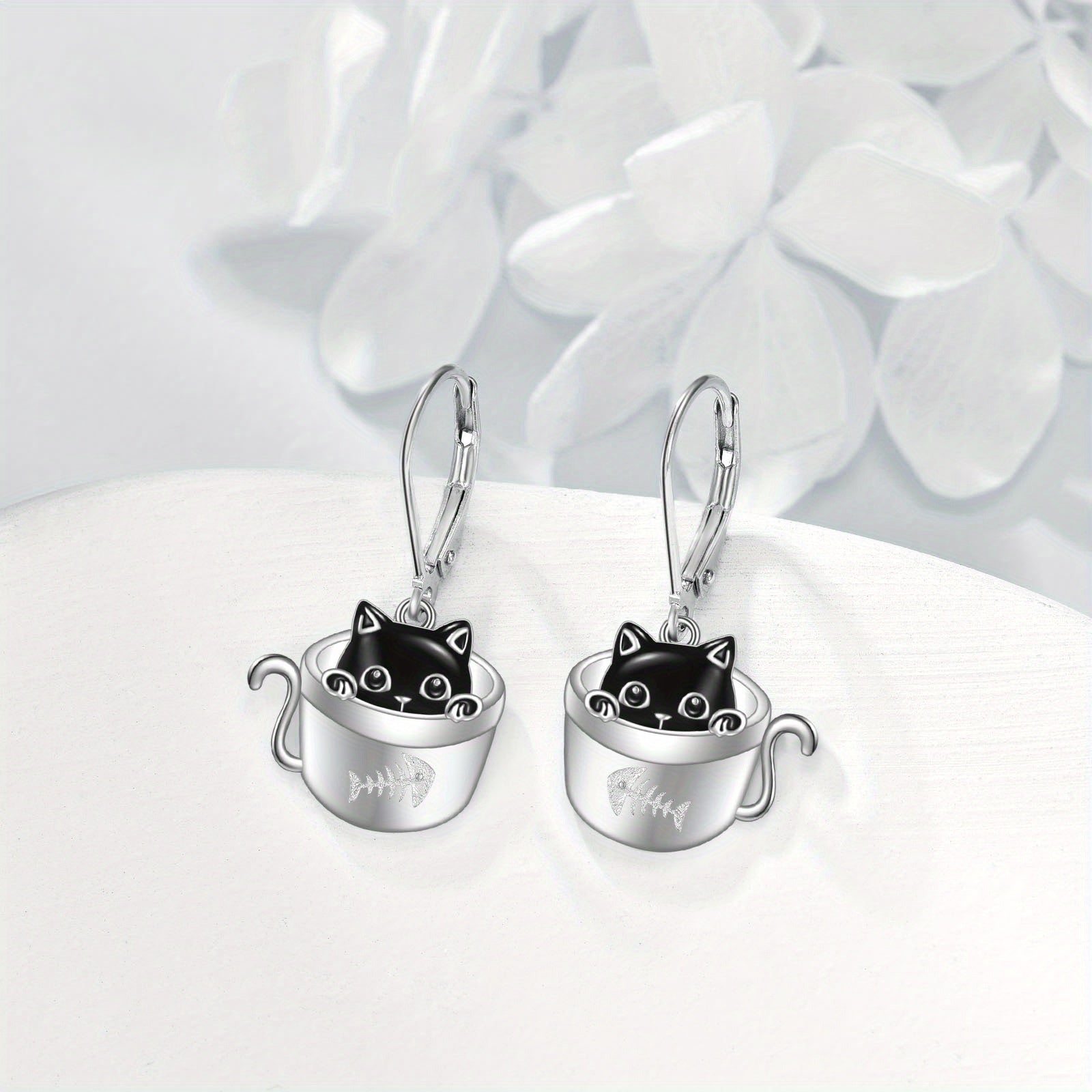 Women's Cat Earrings 925 Sterling Silvery Cup Black Cat Dangle Earrings Cute Animal Earrings Women's Jewelry