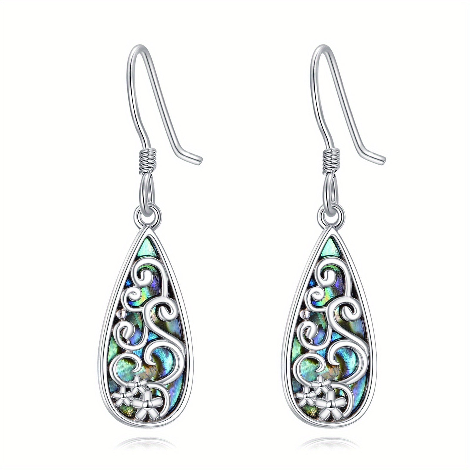 Teardrop Filigree Earrings for Women 925 Sterling Silver Dangle Earrings Abalone Shell Earring for Women