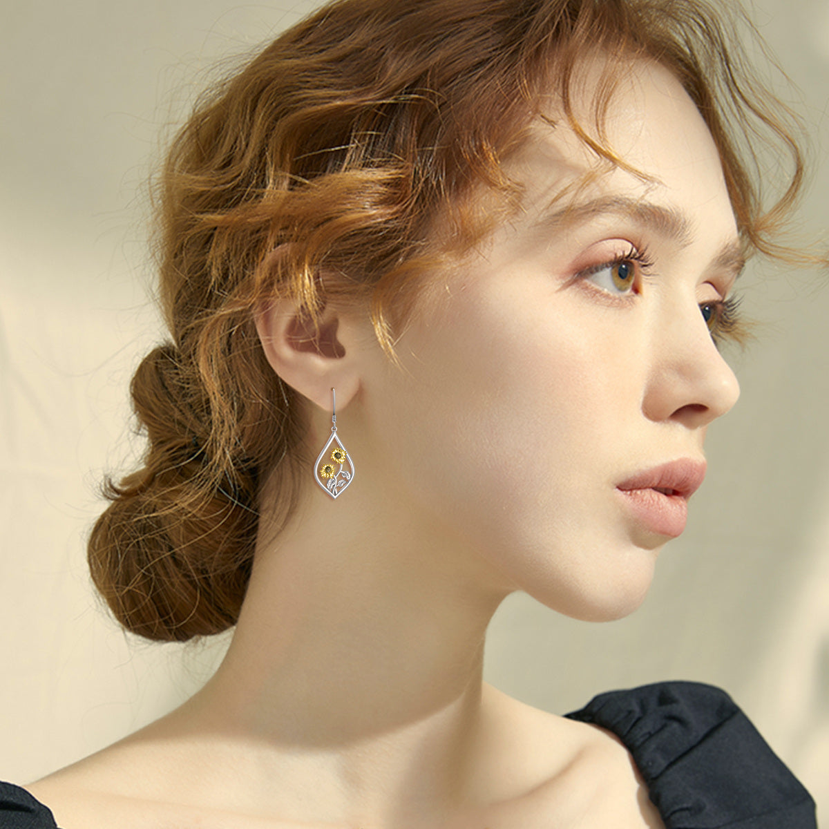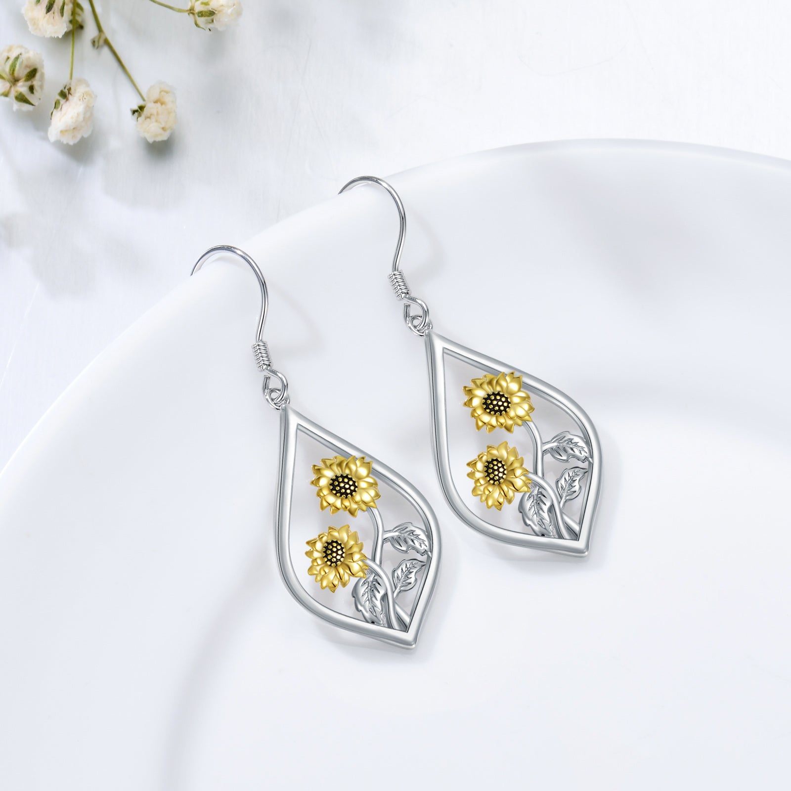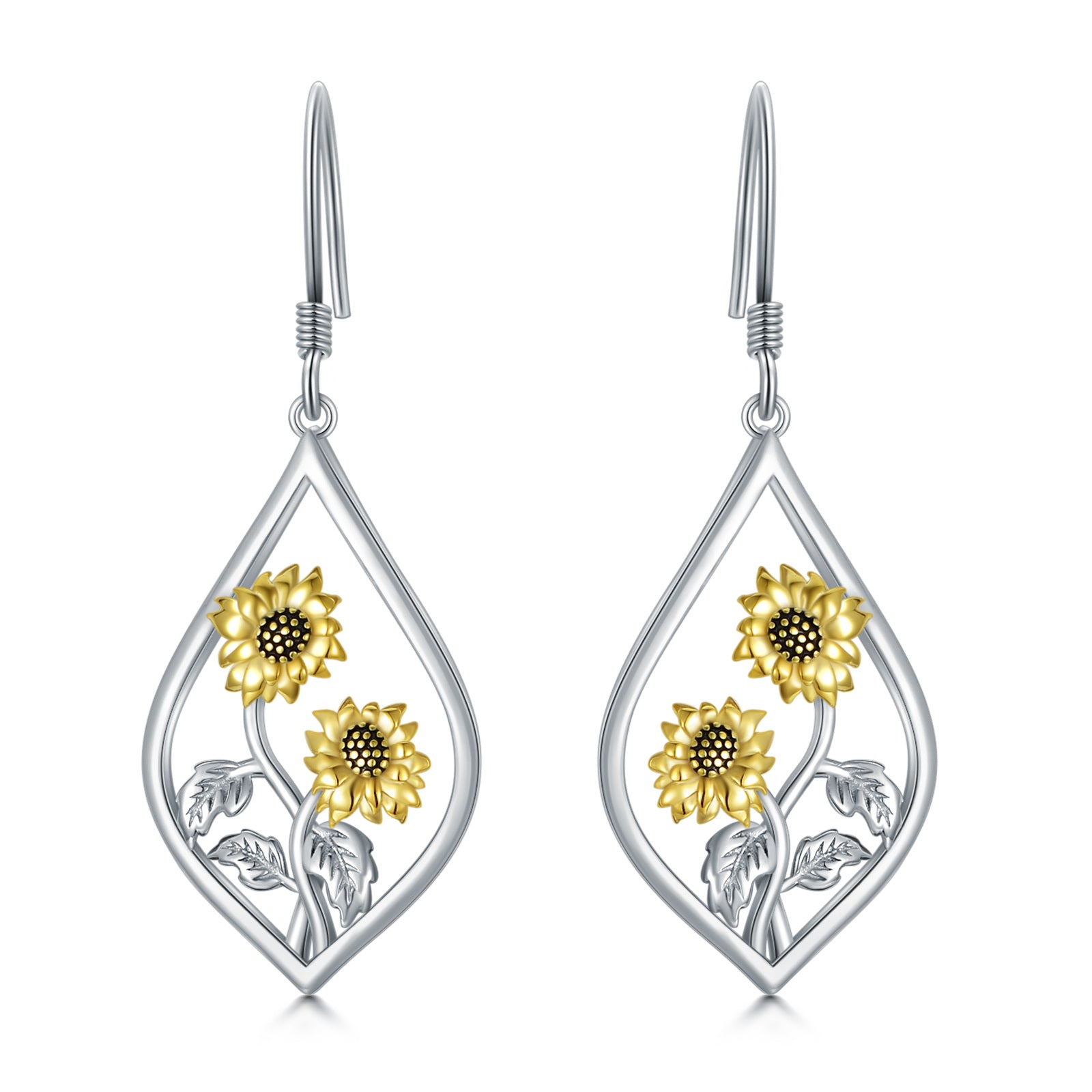 Sterling Silver Sunflower Dangle Earrings - Boho Chic Floral Drop Charm Jewelry with Golden-Tone Accents, Perfect for Daily Wear or Gifting, All-Season Versatile Design, Sunflower Jewelry