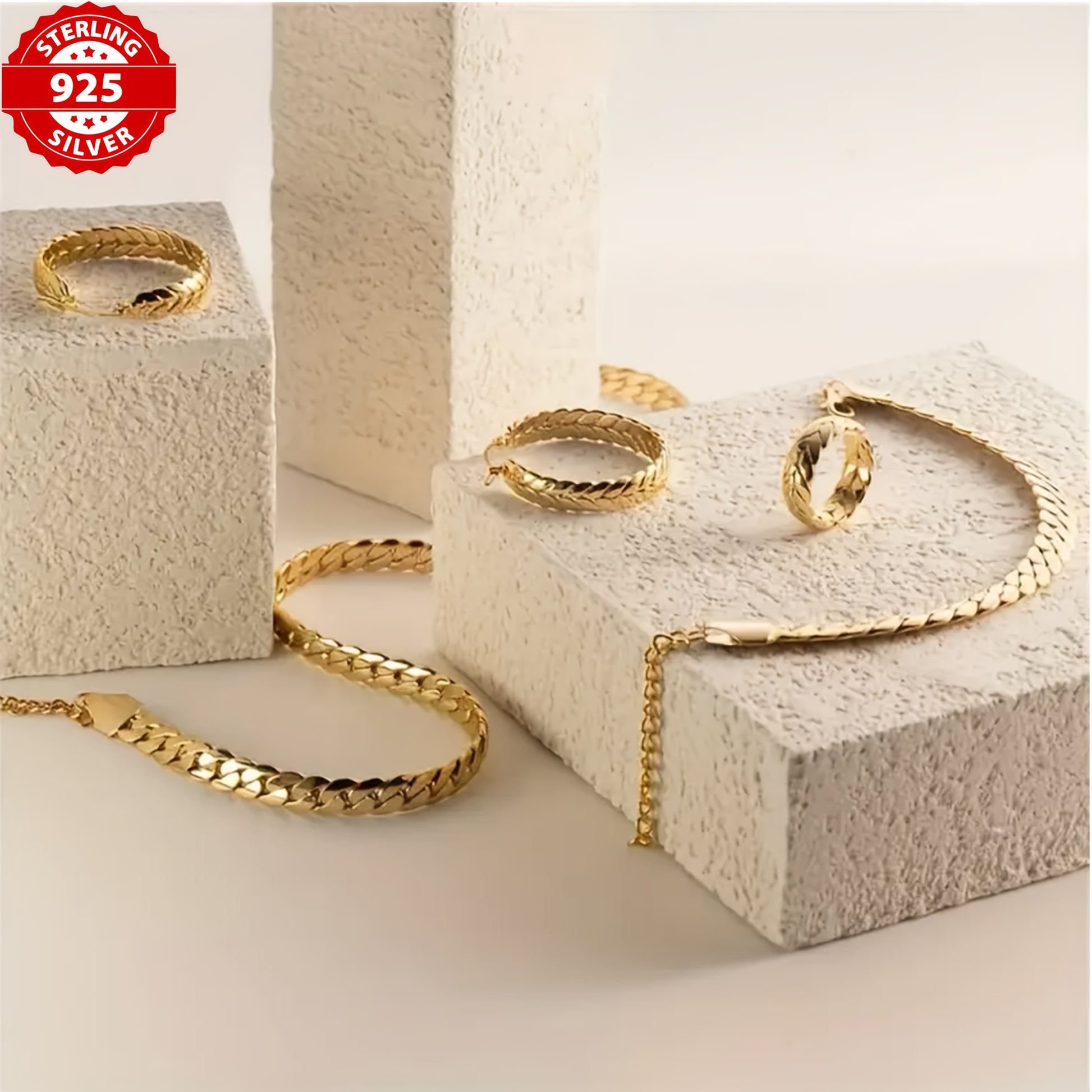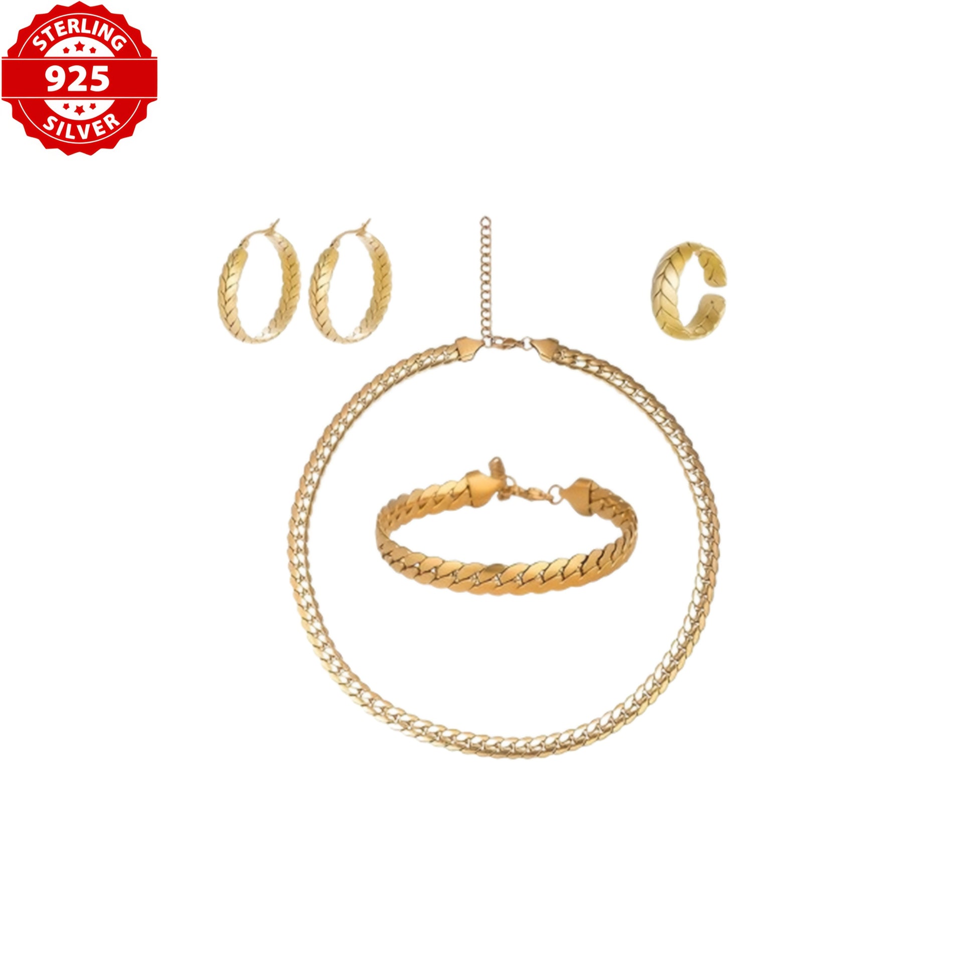 [Serpentine Jewelry] A Serpentine Jewelry 4pcs Set | 923 Silvery 18k Golden Plated | Suitable For Ladies, Wife, Daughter, Birthdays, Anniversaries, Valentine's Day | Comes With An Elegant Gift Box
